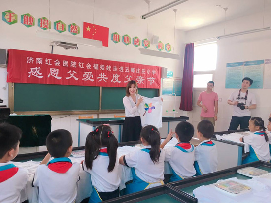 播撒公益种子,关爱儿童成长。济南红绘医院(山东红会福娃娃医院)办公室主任司淑萍表示:“在父亲节来临之际,我们组织这次活动,是想让五峰庄小学的孩子们跟自己的父母进行一次情感上的交流,让孩子们学会感恩父母。多年来,济南红绘医院(山东红会福娃娃医院)一直致力于青少年健康成长的公益项目,并成立红会福娃娃基金,帮助贫困学子继续完成学业,使广大少年儿童在同一片蓝天下共同健康快乐成长。未来,我们将号召更多社会爱心人士,用爱心串起公益,帮助那些真正需要关怀的人们,共建一个更加美好的世界!”