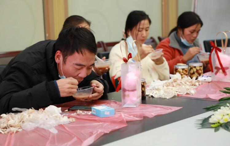在腌制腊八蒜环节,患者们积极参与其中,在工作人员的带领下,开始亲手扒蒜,有的夫妻齐心一起忙碌;也有姐妹俩一起来院的患者,共同扒蒜制作;更有陪伴父母来院的10岁小男孩,他的心愿是“希望爸爸妈妈给自己生个妹妹,想要保护她”,梦想成为哥哥的他已经有了满满的保护欲。