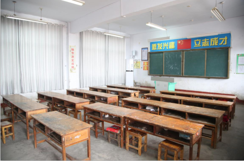 原先的旧桌椅已经破旧不堪